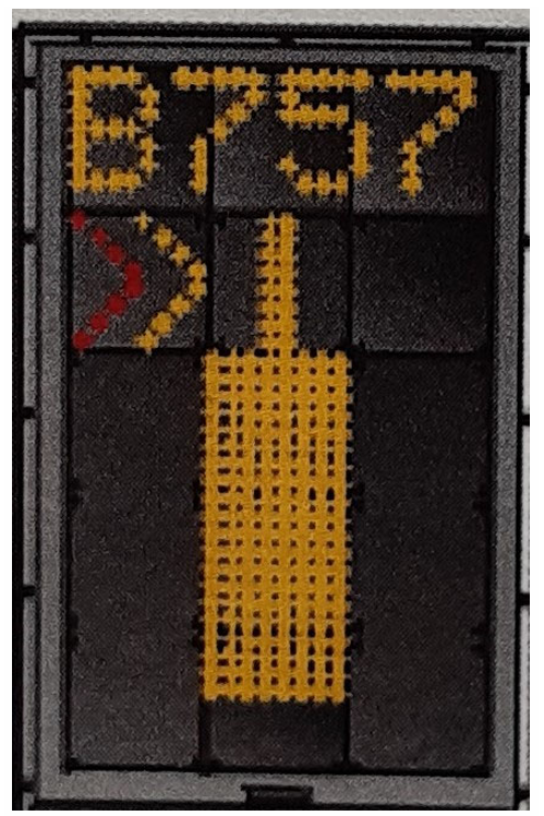 Una línea de cuatro caracteres de presentación alfanumérica, compuesta de LEDs amarillos, en la que se puede dar la siguiente información: número del puesto de estacionamiento (cuando la guía no está activada), tipo de aeronave, inicio del atraque (WAIT TEST), exceso de velocidad en la aproximación (SLOW DOWN), posición de parada (STOP), aeronave estacionada en posición correcta (OK), posición de parada sobrepasada (TOO FAR), pérdida de detección de la aeronave (WAIT), fallo de verificación de aeronave (STOP e ID FAIL), atraque interrumpido (STOP SBU), visibilidad del sistema de atraque reducido por condiciones meteorológicas (DOWN GRADE).
